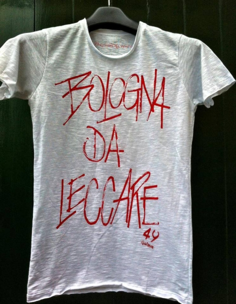 Basta guardarci: la nostra divisa per lavorare, comoda, è personalizzata con il nostro slogan, #bolognadaleccare.”