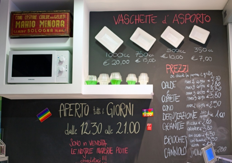 E ritroviamo questa qualità anche nella collaborazione con il pasticcere Gino Fabbri, che, fra le cose, fornisce loro anche le brioches alla siciliana, col tuppo, da farcire con gelato e panna o da accompagnare alle granite, nell'utilizzo di panna e latte di alta qualità del Sud Tirolo e di zucchero di canna biologico e del commercio equo-solidale.