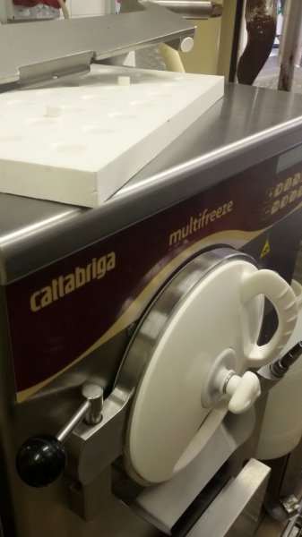 Usiamo le vecchie macchine della Carpigiani. Hanno smesso di produrle nell'84: lavorano il gelato come “nessuno”.”