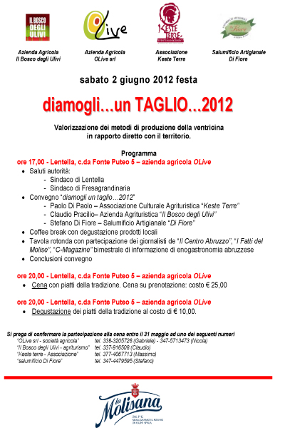 Domani, 2 giugno, si terrà a Lentella un convegno sui metodi di produzione della ventricina e...