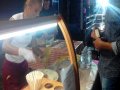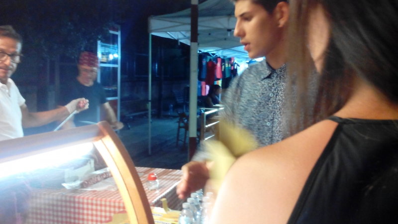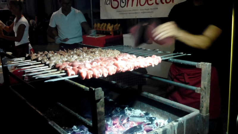 La scena che si pone innanzi è questa: mini involtini di carne infilzati in grossi stecchi di metallo, affilati in una sorta di graticola distanziata a 40 centimetri circa da una braciere ardente. Quando gli involtini acquisiscono il giusto grado di cottura, vengono privati dello stecco di metallo e serviti dentro coni di carta per alimenti.
