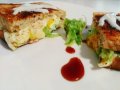 Formare il toast: farcire le fette di pane bianco con mozzarella e formaggi, mettendo qualche fettina di speck da entrambi i lati e l'uovo nel mezzo. Passare in padella con una noce di burro ed erbe aromatiche, girando accuratamente a metà cottura. Servire accompagnando con la salsa che si preferisce o con una bella insalata mista.