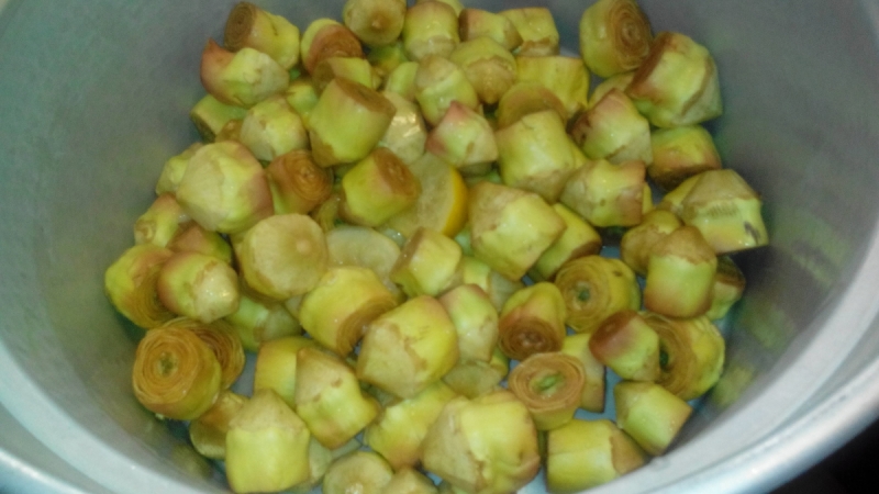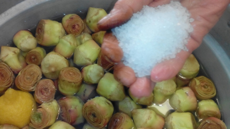 Per trecento carciofini servono circa tre litri di aceto, due litri di vino e un pugno di sale.