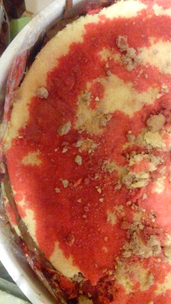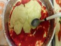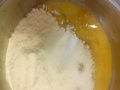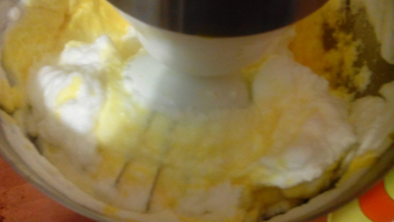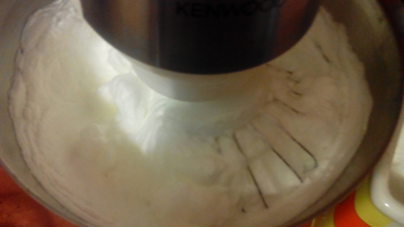 Innanzitutto si prepara il pan di spagna. Si possono seguire due procedimenti: si montano gli albumi a neve e si aggiungono gradatamente e molto delicatamente (dall’alto verso il basso) tuorli, zucchero e farina; oppure si monta per almeno dieci minuti (finchè il composto risulta gonfio, spumoso e chiaro) uova intere con zucchero e poi si aggiunge gradatamente (sempre dall’alto verso il basso) la farina. Questa operazione è molto importante: occorre cercare di far mantenere le bolle d’aria formatesi negli albumi montati.
