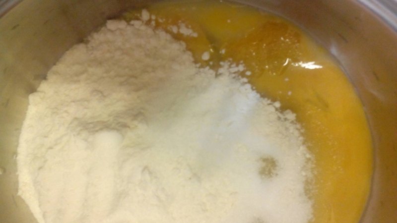 10 cucchiai di farina e 10 cucchiai di zucchero; per la crema 1 litro di latte intero