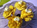 Impastare gli ingredienti. Far riposare l'impasto quindi stendere molto sottile; ricavare dei dischi di grandezza scalare che andranno sovrapposti e incisi ai lati a formare una rosa. Friggere in olio profondo scuotendo con il manico di un mestolino le rose per farle arricciare. Asciugare su carta da cucina e decorare il centro con spuma di ricotta salata ottenuta frullando assieme tutti gli ingredienti, o con confettura e zucchero al velo se si preferiscono dolci.