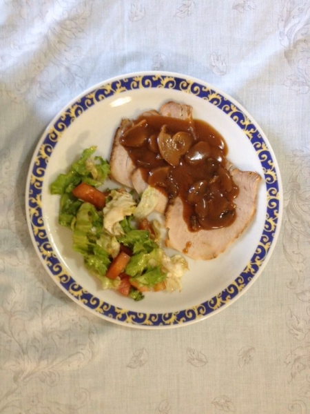 Arrosto di maiale con salsa e funghi trifolati